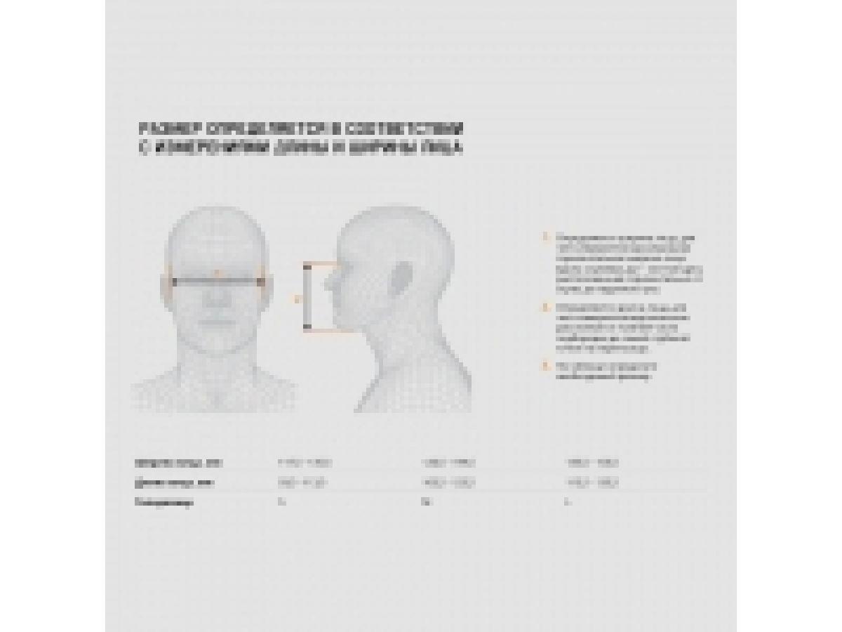 - система регулировки (полумаска перемещается по стропам оголовья, что позволяет отнимать её от лица без снятия в т.ч. других средств защиты, например, каски);