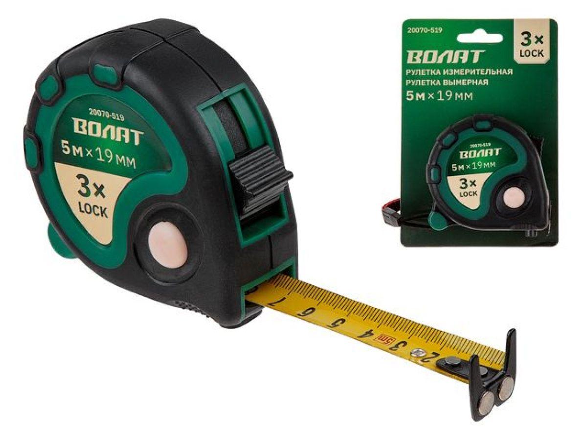 | | Рулетка 5м/19мм пласт. копр. ВОЛАТ (3 мех. фиксации, ABS) |