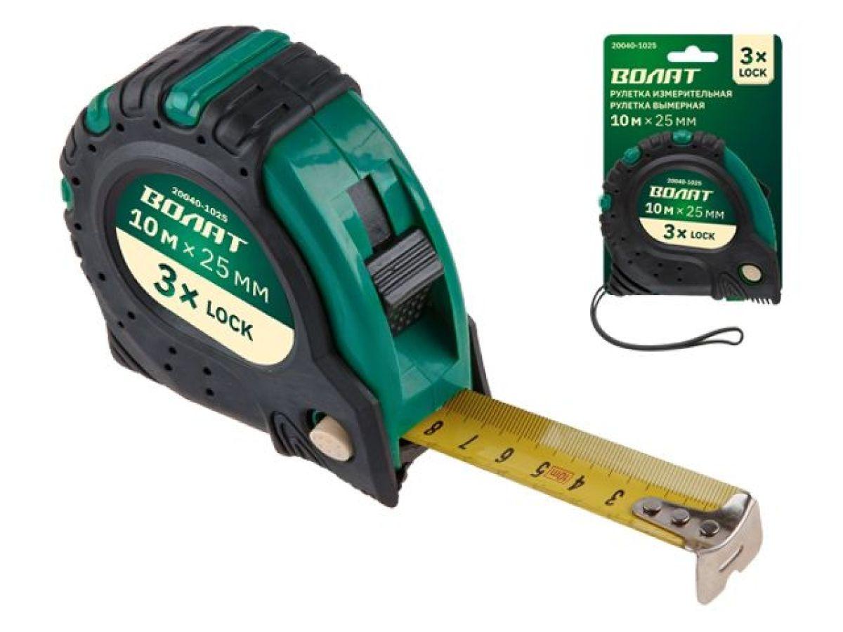 | | Рулетка 10м/25мм обрезин. корп. ВОЛАТ (3 мех. фиксации, ABS+TPR) |