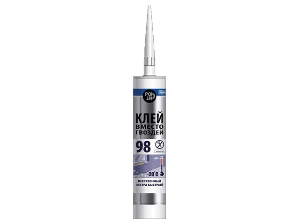 | | Клей монтажный POINT "Клей вместо гвоздей 98", 80мл (бежевый, всесезонный, экстра быстрый) |