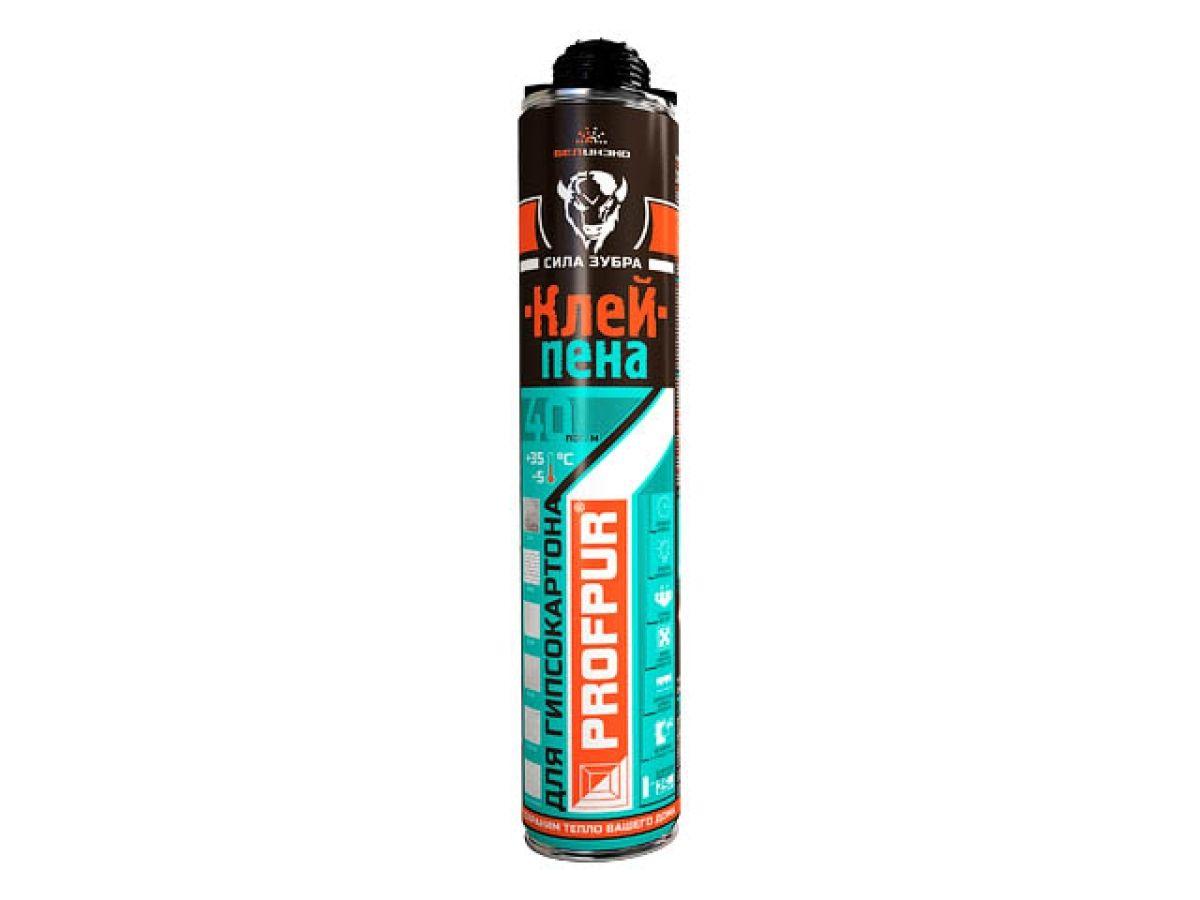 | Клей-пена для приклеивания гипсокартона PROFPUR (750мл) (1 баллон = 25 кг сухой клеевой смеси) |