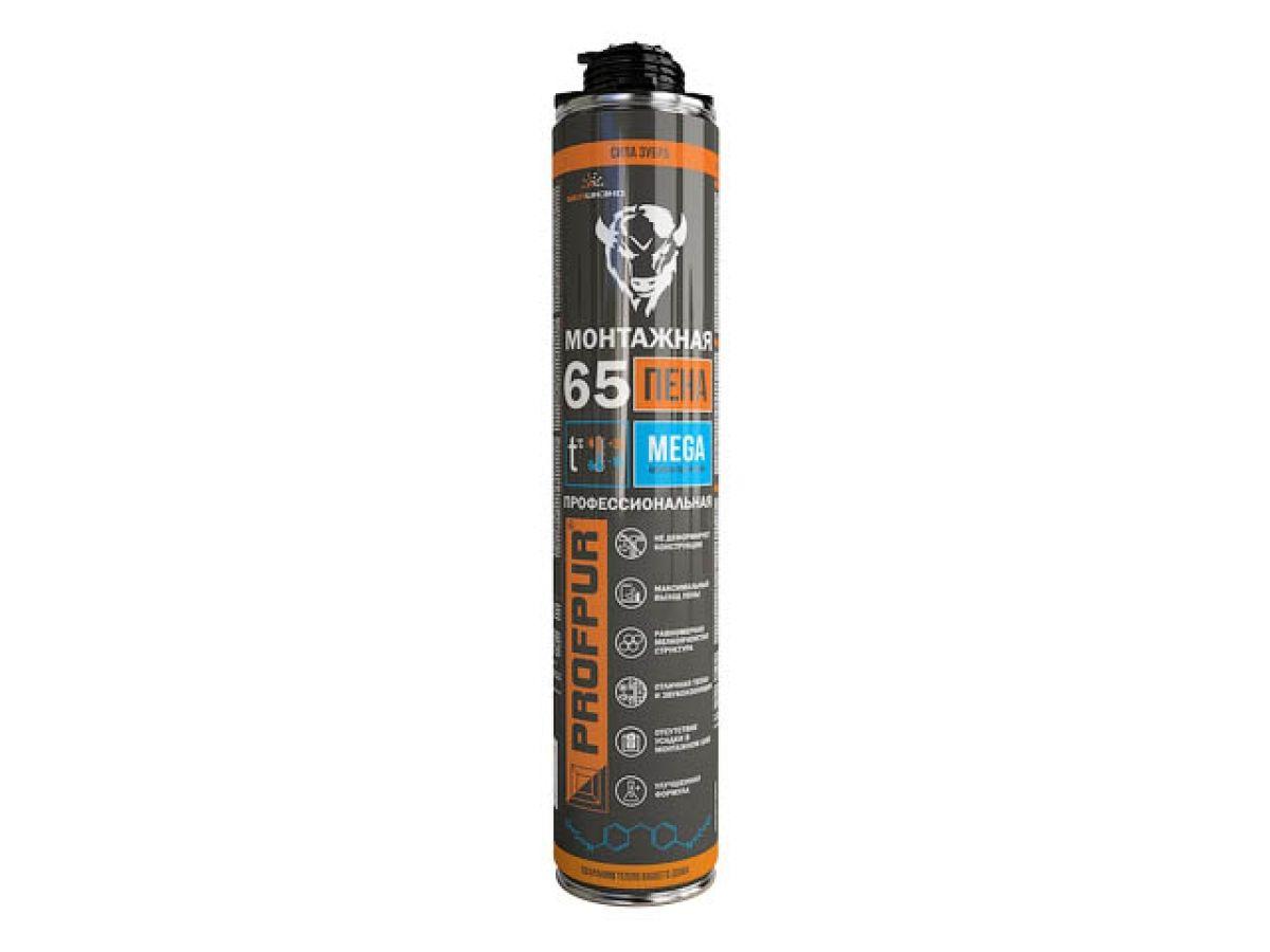 | | Пена монтажная профессиональная всесезонная PROFPUR Mega, (870мл) (Выход до 65л) |