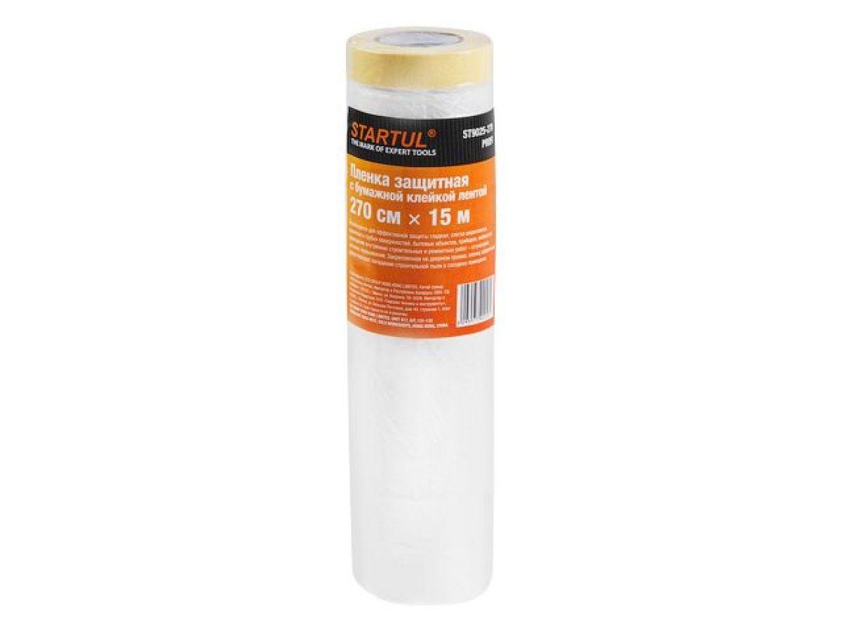 | | Пленка защитная с бумажной клейкой лентой 270смх15м STARTUL PROFI (ST9025-270) (для внутренних работ, укрывная) |
