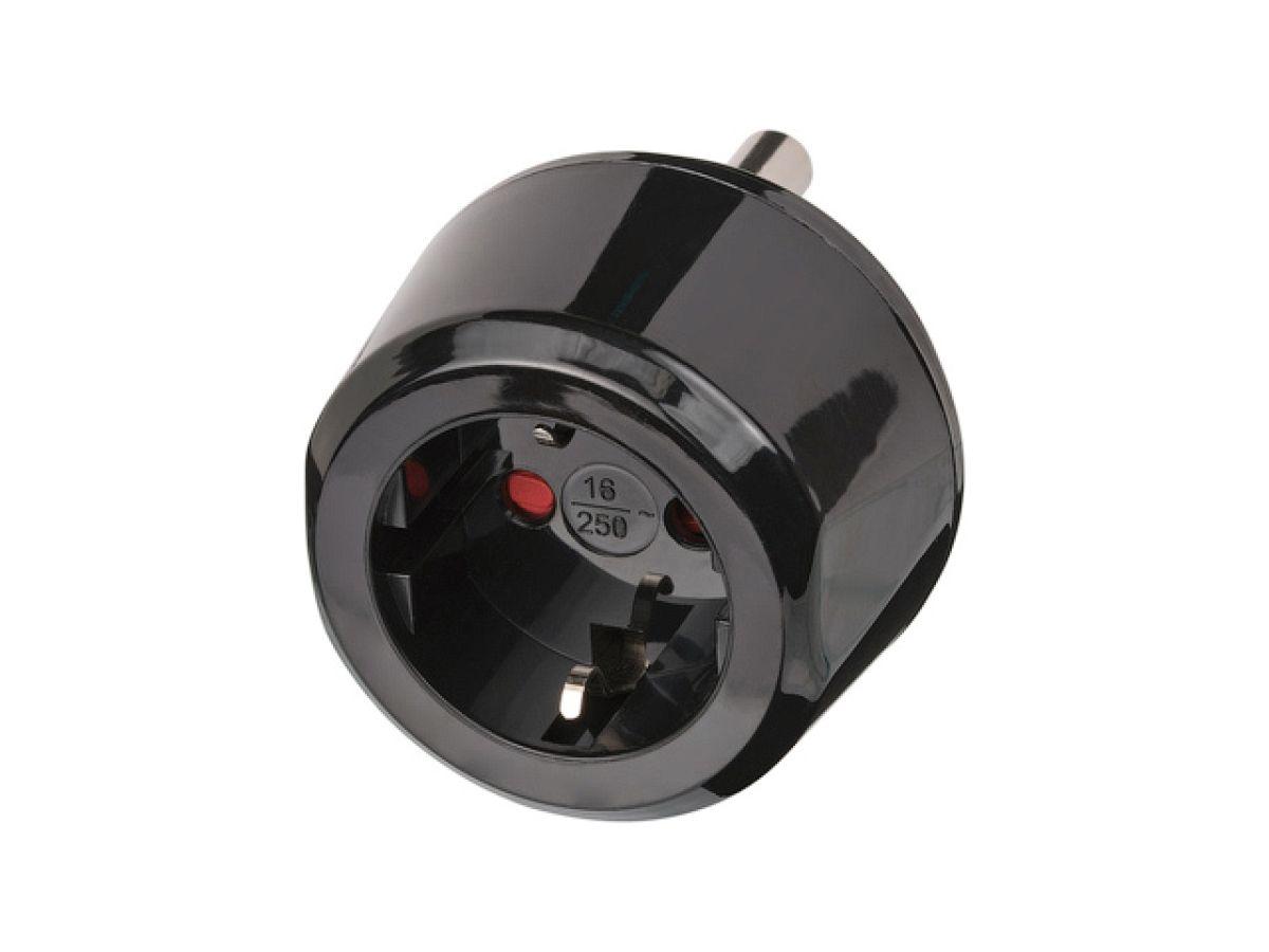 Адаптер для подключения электрических устройств с подключаемой системой заземления из Австралии или Китая, в странах с подключаемыми системами заземления, такими как DE, FR, BE, PL, NL, ES, PT, SE, FI, NO, GR, TR, AT ... (Обратите внимание, что иногда в разных странах есть несколько подключаемых систем, и Brennenstuhl не гарантирует, что разъём для путешествий подходит для всех подключаемых систем в одной стране)