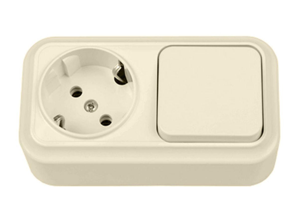 | | Блок выкл. 1 клав. + розетка (открытая, с/з) бежеваяя, Вариант, BYLECTRICA |