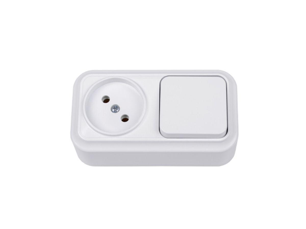 | | Блок выкл. 1 клав. + розетка (открытая, с/з) белая, Вариант, Bylectrica |