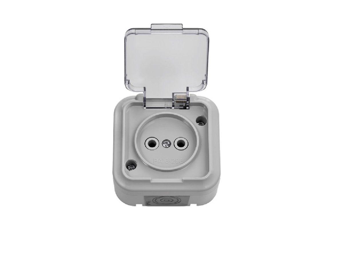 | | Розетка 1-ая (открытая, б/з, брызг. защ.) серая, Пралеска Аква, Bylectrica (IP54 пылебрызгозащищенные, прозрачная крышка) |