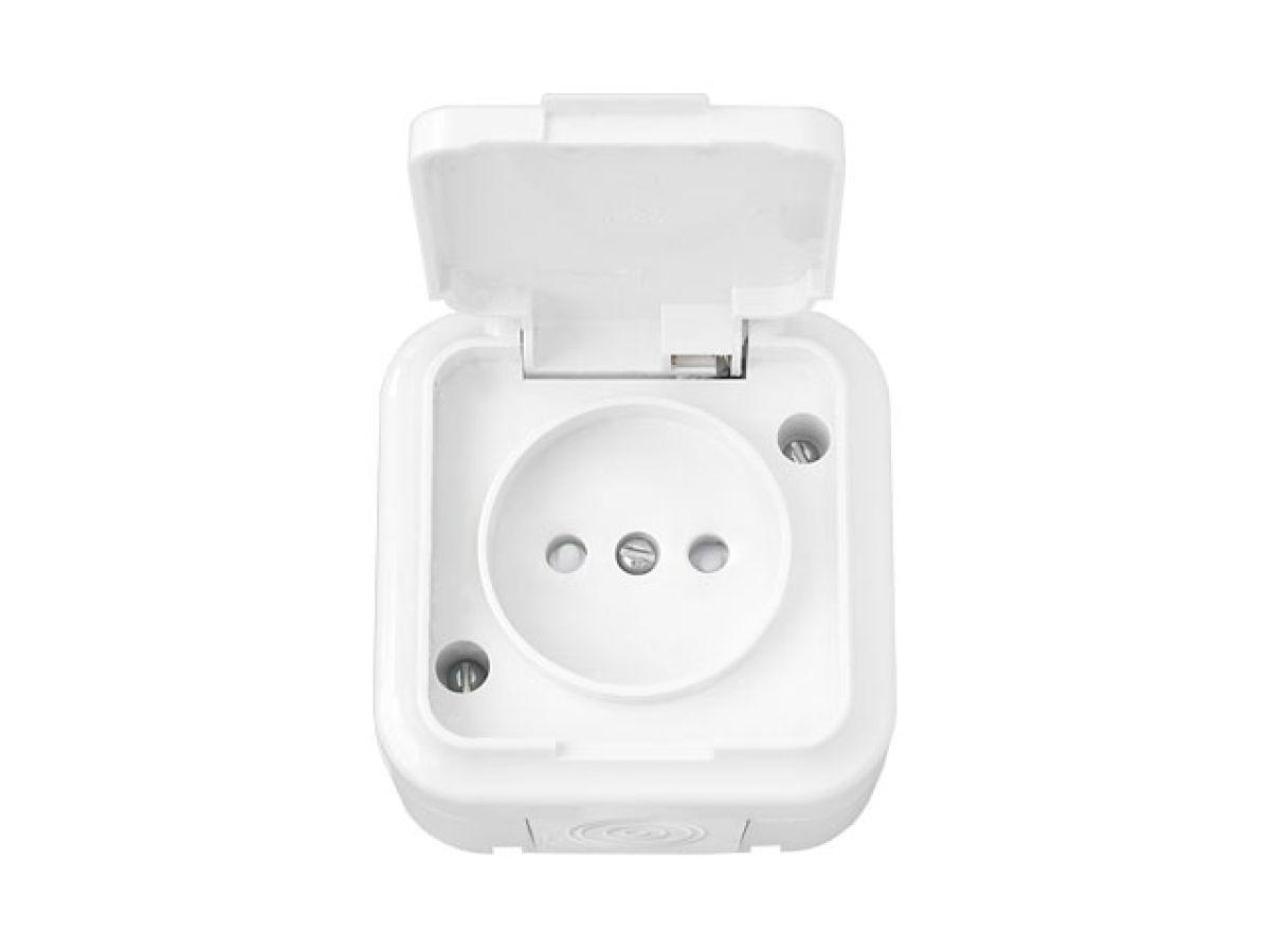 | | | | Розетка 1-ая (открытая, б/з,з/ш, брызг. защ.) белая, Пралеска Аква, BYLECTRICA |