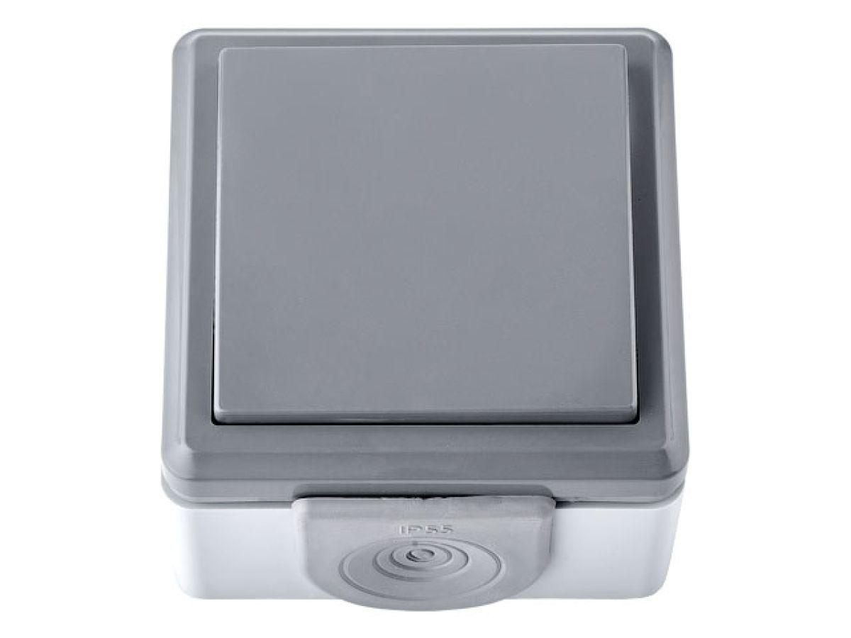 | | Выключатель 1 клав. (открытый, 10А, струезащ.) серый, Пралеска Аква, BYLECTRICA (IP55 пылеструезащищенный) |