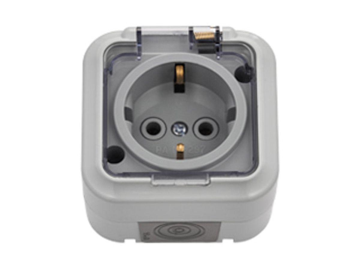| | Розетка 1-ая (открытая, с/з, брызг. защ.) серая, Пралеска Аква, Bylectrica (IP54 пылебрызгозащищенные, прозрачная крышка) |
