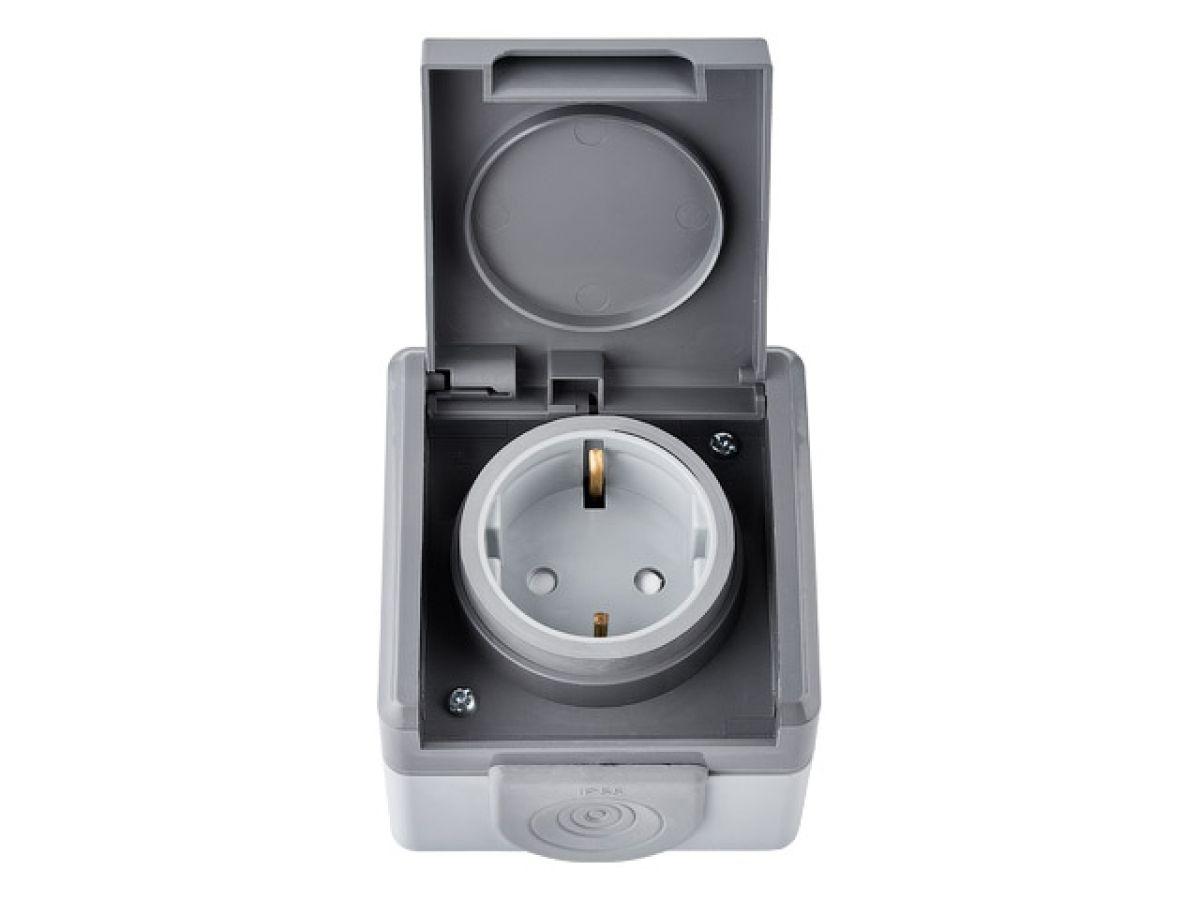| Розетка 1-ая (открытая, с/з, струезащ.) серая, Пралеска Аква, Bylectrica (IP55 пылеструезащищенная) |