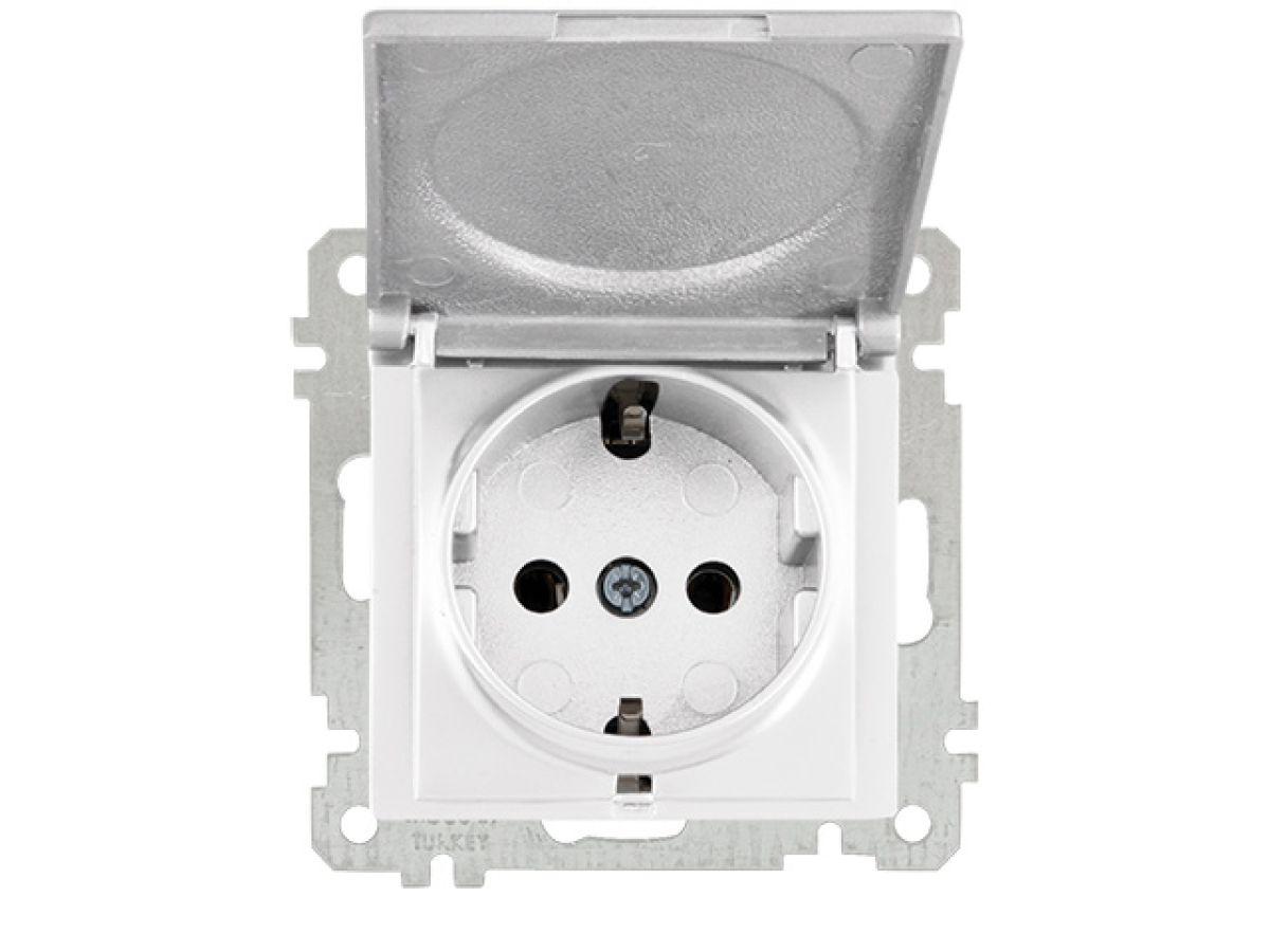 | | Розетка 1-ая (скрытая, без рамки, с/з, с крышкой) белая, RITA, MUTLUSAN (16 A, 250 V, IP 20) |