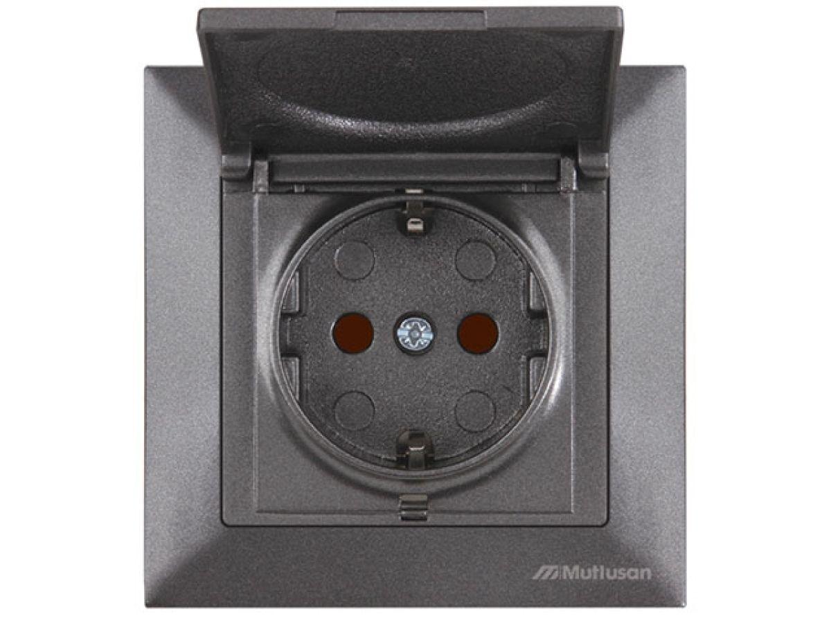 | | Розетка 1-ая (скрытая, с/з, шторки, с крышкой) дымчатая, DARIA, MUTLUSAN (16 A, 250 V, IP 20) |