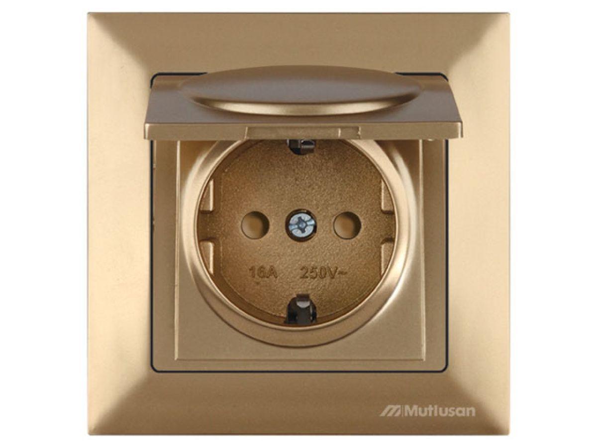 | | Розетка 1-ая (скрытая, с/з, шторки,с крышкой) золото, DARIA, MUTLUSAN (16 A, 250 V, IP 20) |