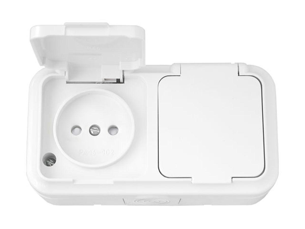| | Розетка 2-ая (открытая, б/з, брызг. защ.)белая, Пралеска Аква, BYLECTRICA (IP54 пылебрызгозащищенные) |