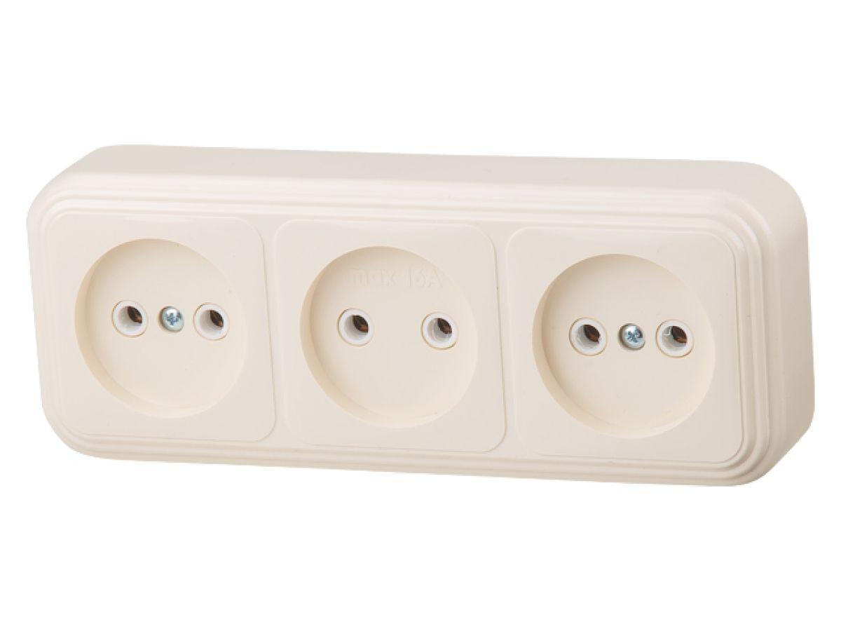 | | Розетка 3-ая (открытая, б/з) бежевая, Вариант, BYLECTRICA |