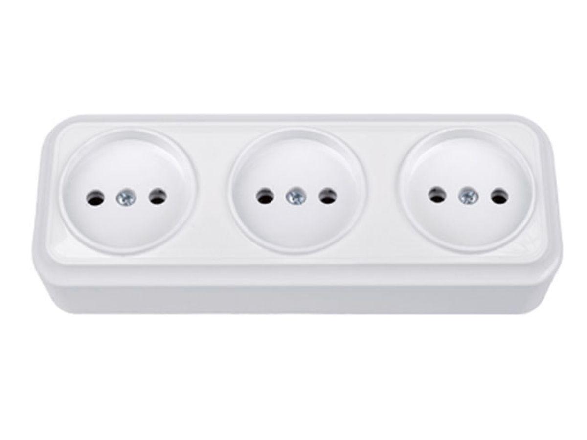 | | Розетка 3-ая (открытая, б/з) белая, Пралеска, Bylectrica |