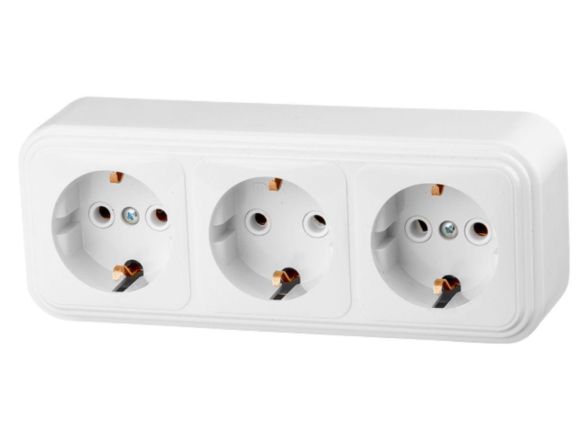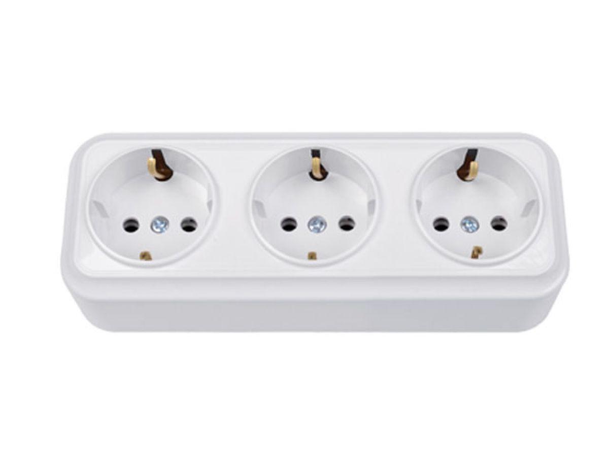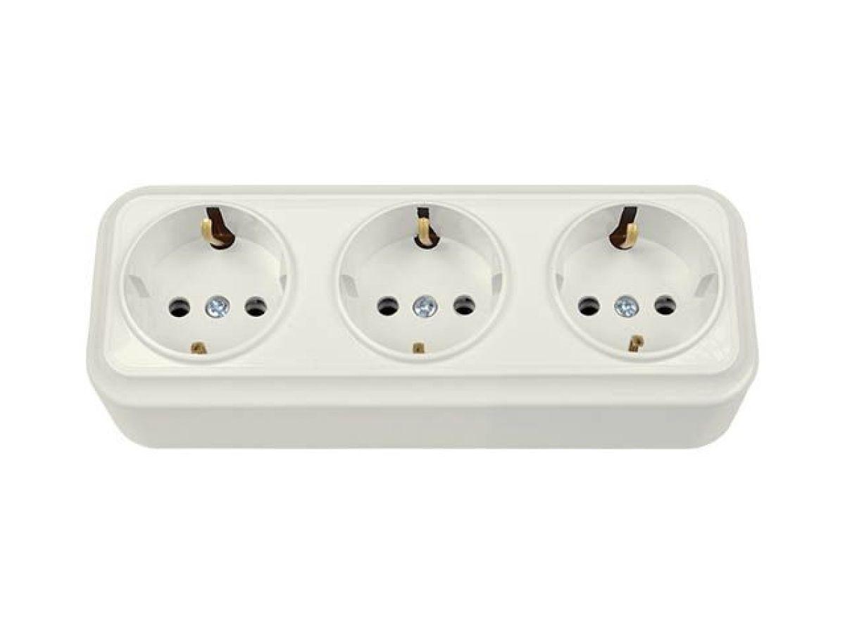 | | Розетка 3-ая (открытая, с/з) белая, Вариант, Bylectrica |