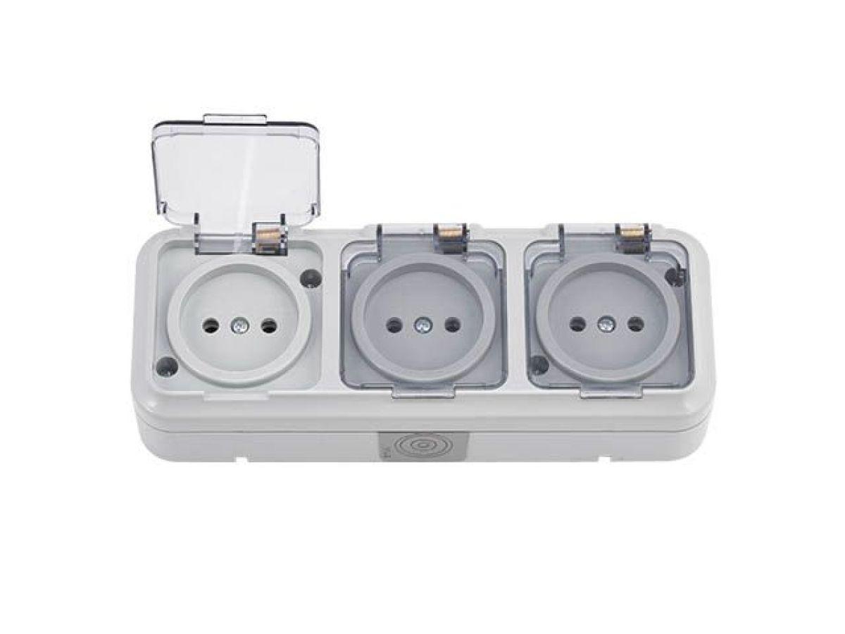 | Розетка 3-ая (открытая, б/з, брызг. защ.) серая, Пралеска Аква, Bylectrica (IP54 пылебрызгозащищенные, прозрачная крышка) |