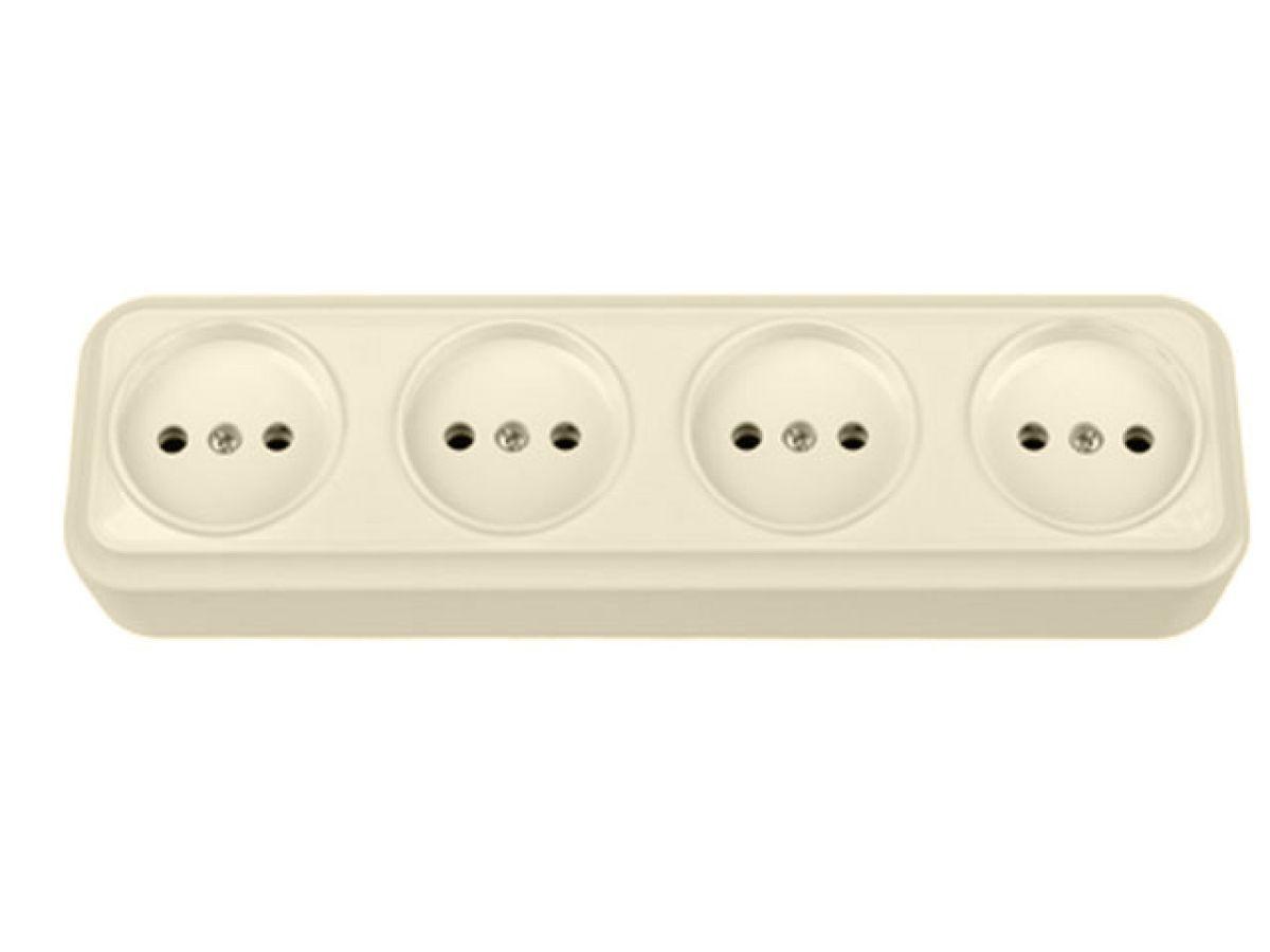 | | Розетка 4-ая (открытая, б/з) бежевая, Вариант, BYLECTRICA |
