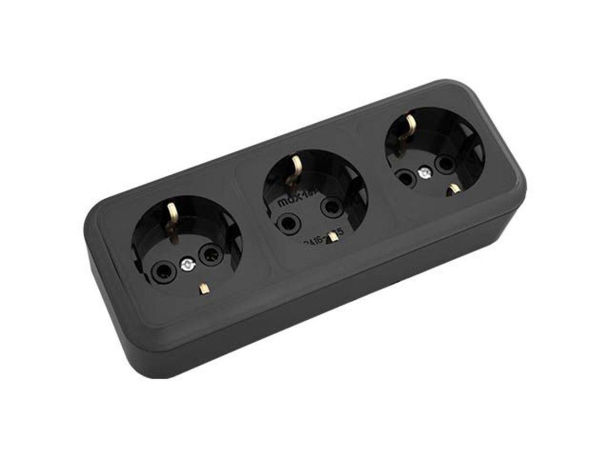 | Розетка 3-ая (открытая, с/з) черная, Пралеска, Bylectrica |