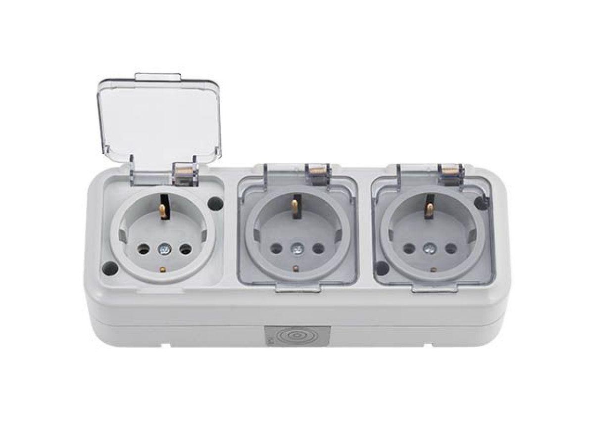 | | Розетка 3-ая (открытая, с/з, брызг. защ.) серая, Пралеска Аква, Bylectrica (IP54 пылебрызгозащищенные, прозрачная крышка) |