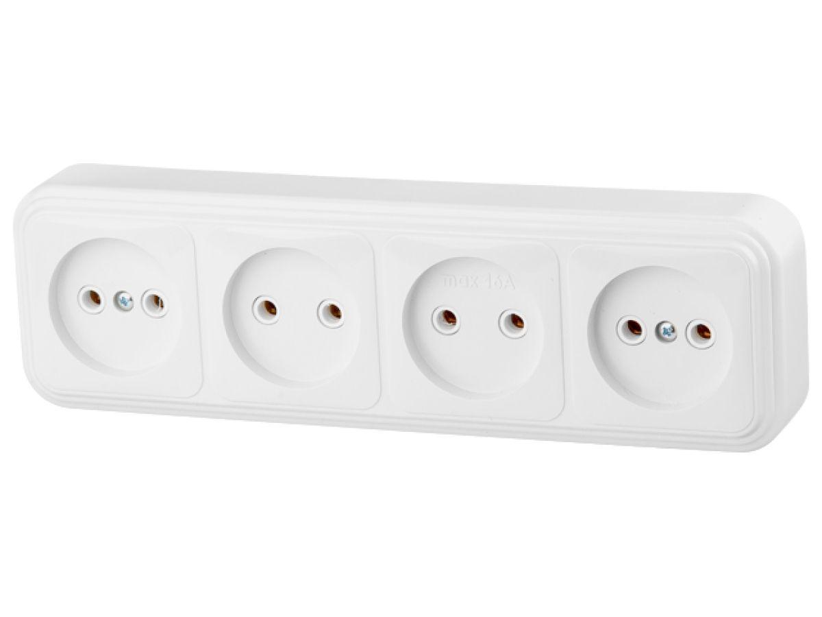 | | Розетка 4-ая (открытая, б/з) белая, Вариант, Bylectrica |