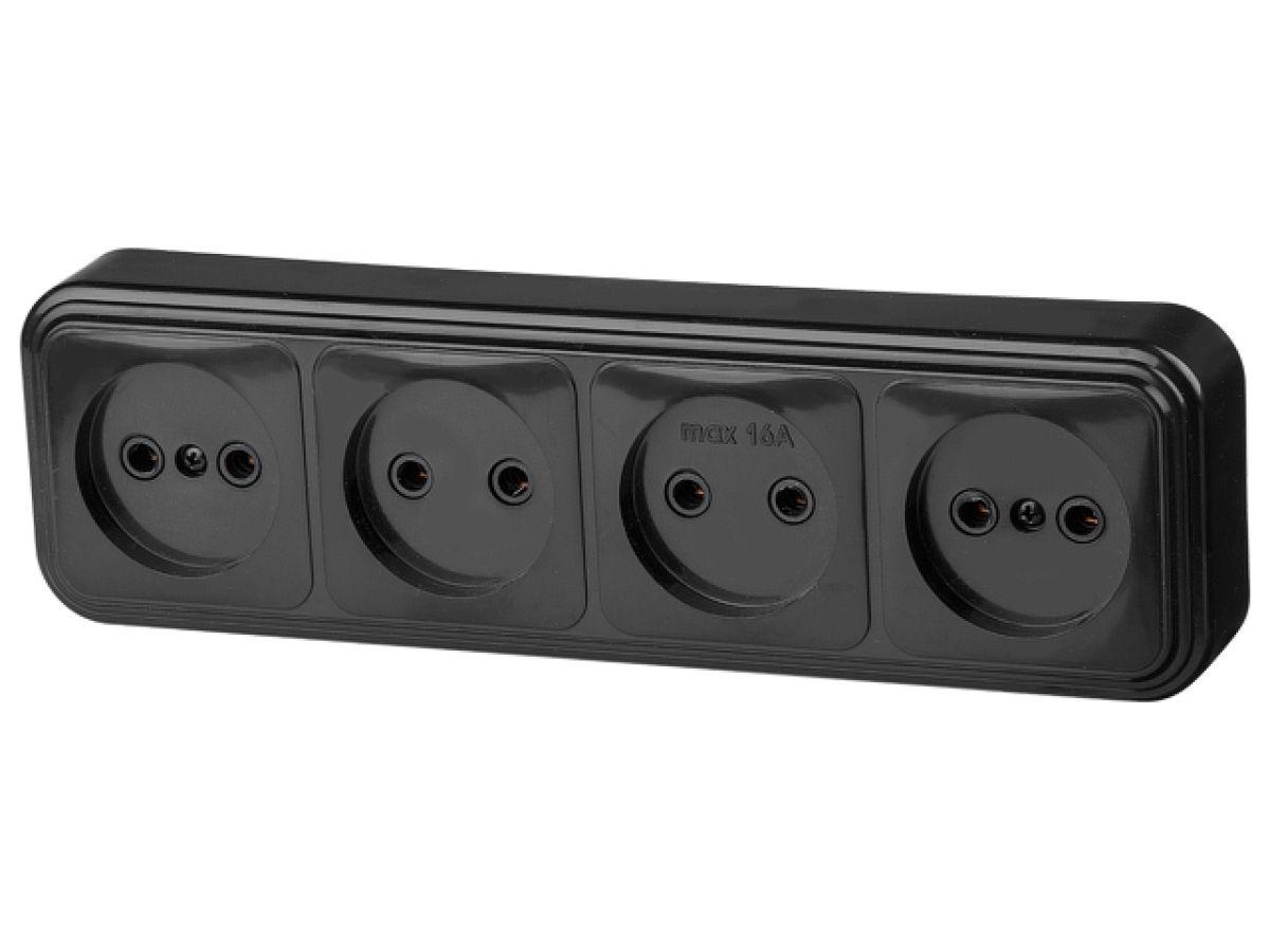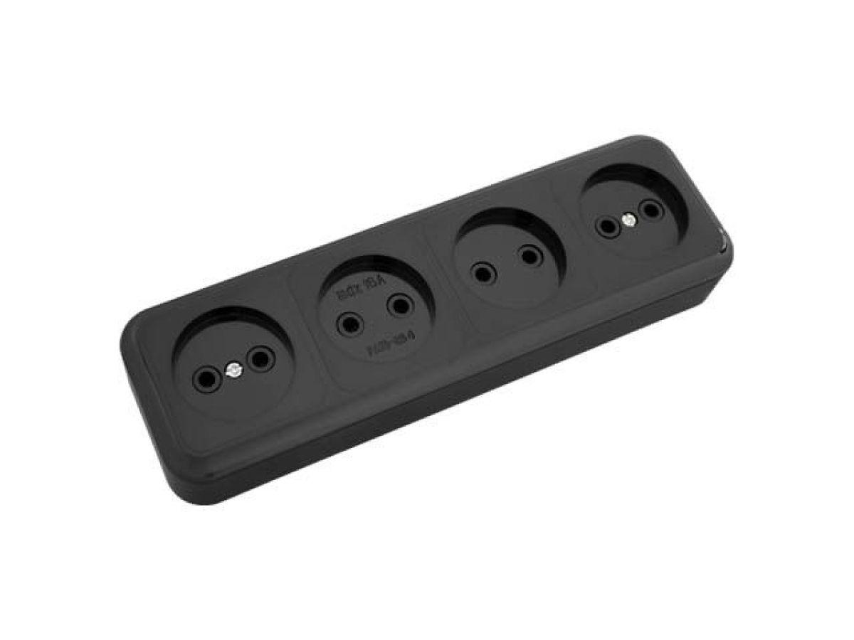 | | Розетка 4-ая (открытая, б/з) черная, Пралеска, Bylectrica |