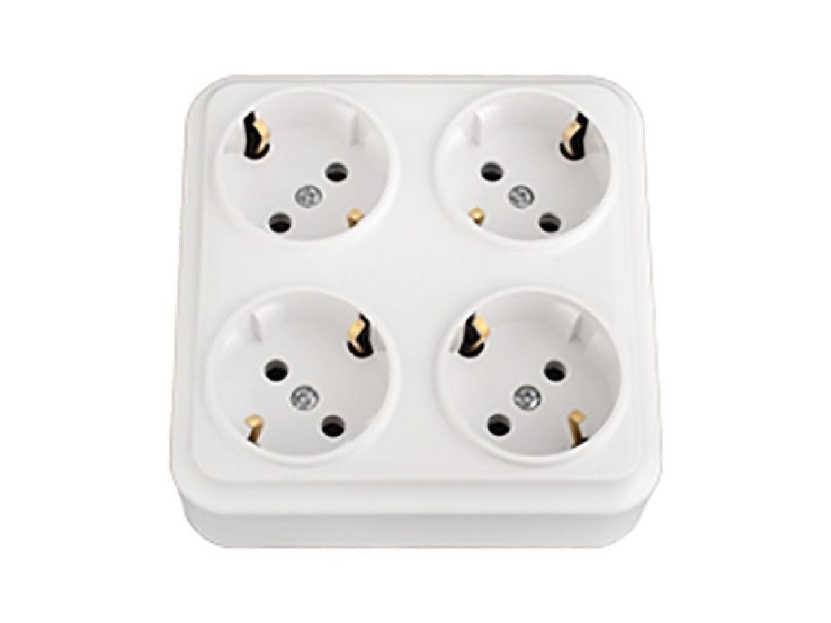 | | Розетка 4-ая (открытая, с/з) белая, Bailly, LEIDEN ELECTRIC |
