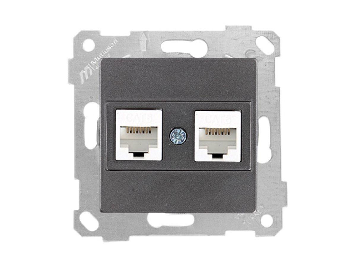 | | Розетка компьютерная 2xRJ45 (Cat6, скрытая, без рамки) дымчатая, RITA, MUTLUSAN |