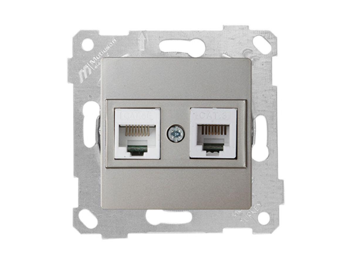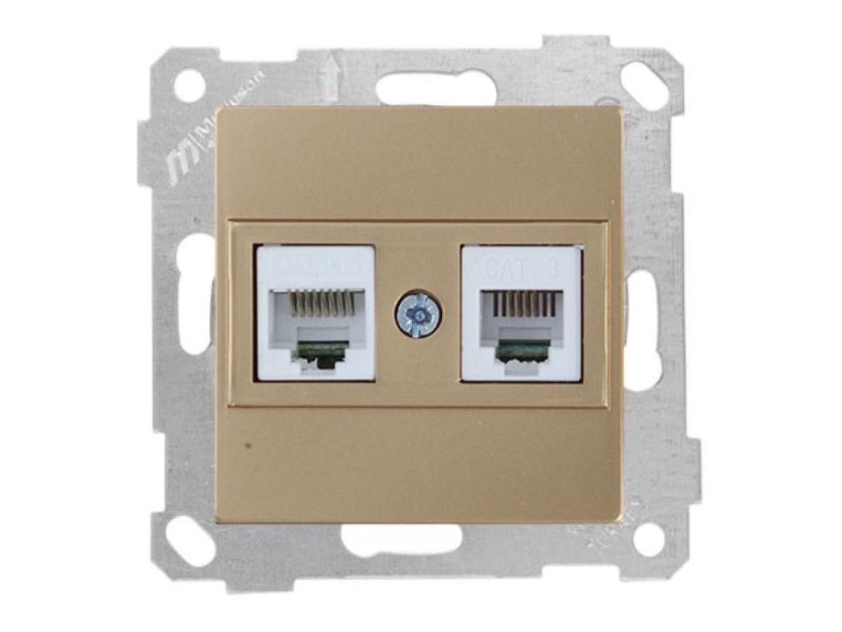 | Розетка телефонная + компьютерная (RJ12+Cat5e, скрытая, без рамки) золото, RITA, MUTLUSAN |