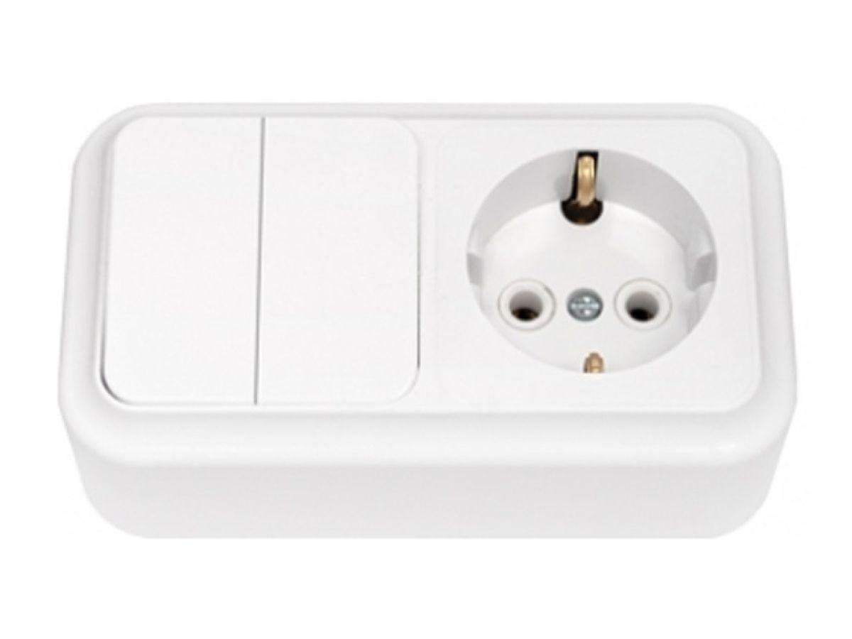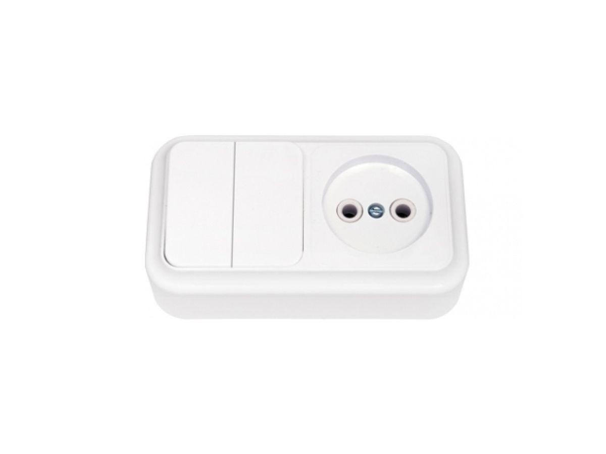 | | Блок выкл. 2 клав. + розетка (открытая, б/з) белая, Пралеска, Bylectrica |