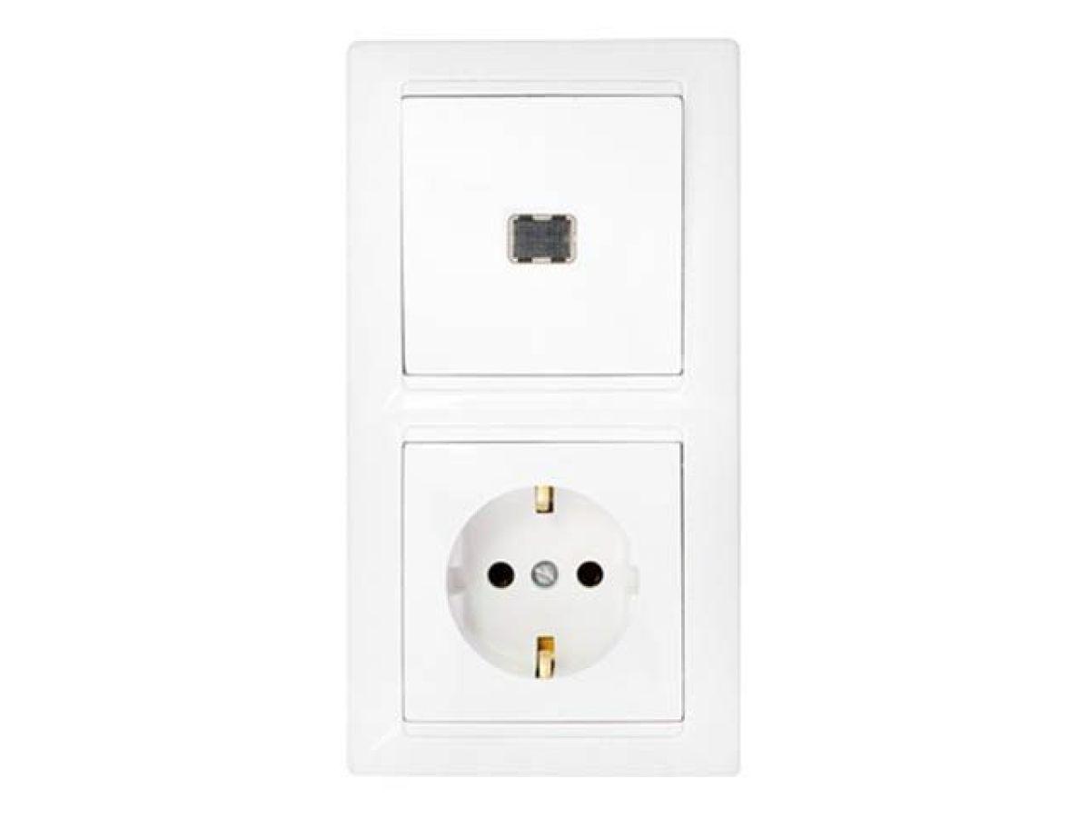| Блок выкл. 1 клав. + розетка (скрытая, с/з) со световой индикацией, белая, Стиль, BYLECTRICA |