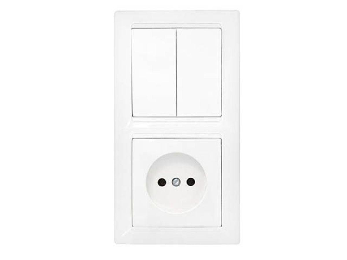 | | Блок выкл. 2 клав. + розетка (скрытая, б/з) белая, Стиль, Bylectrica |