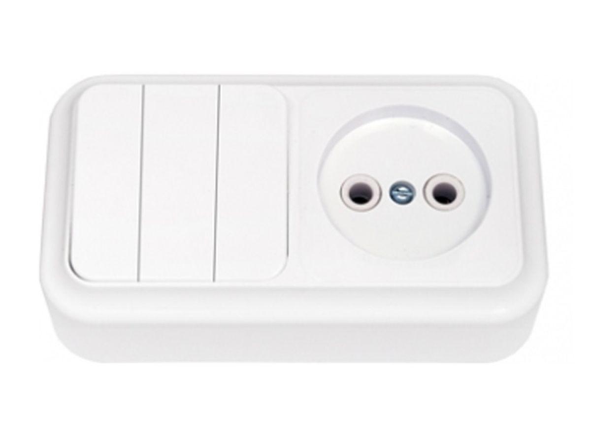 | | Блок выкл. 3 клав. + розетка (открытая, б/з) белая, Пралеска, BYLECTRICA |