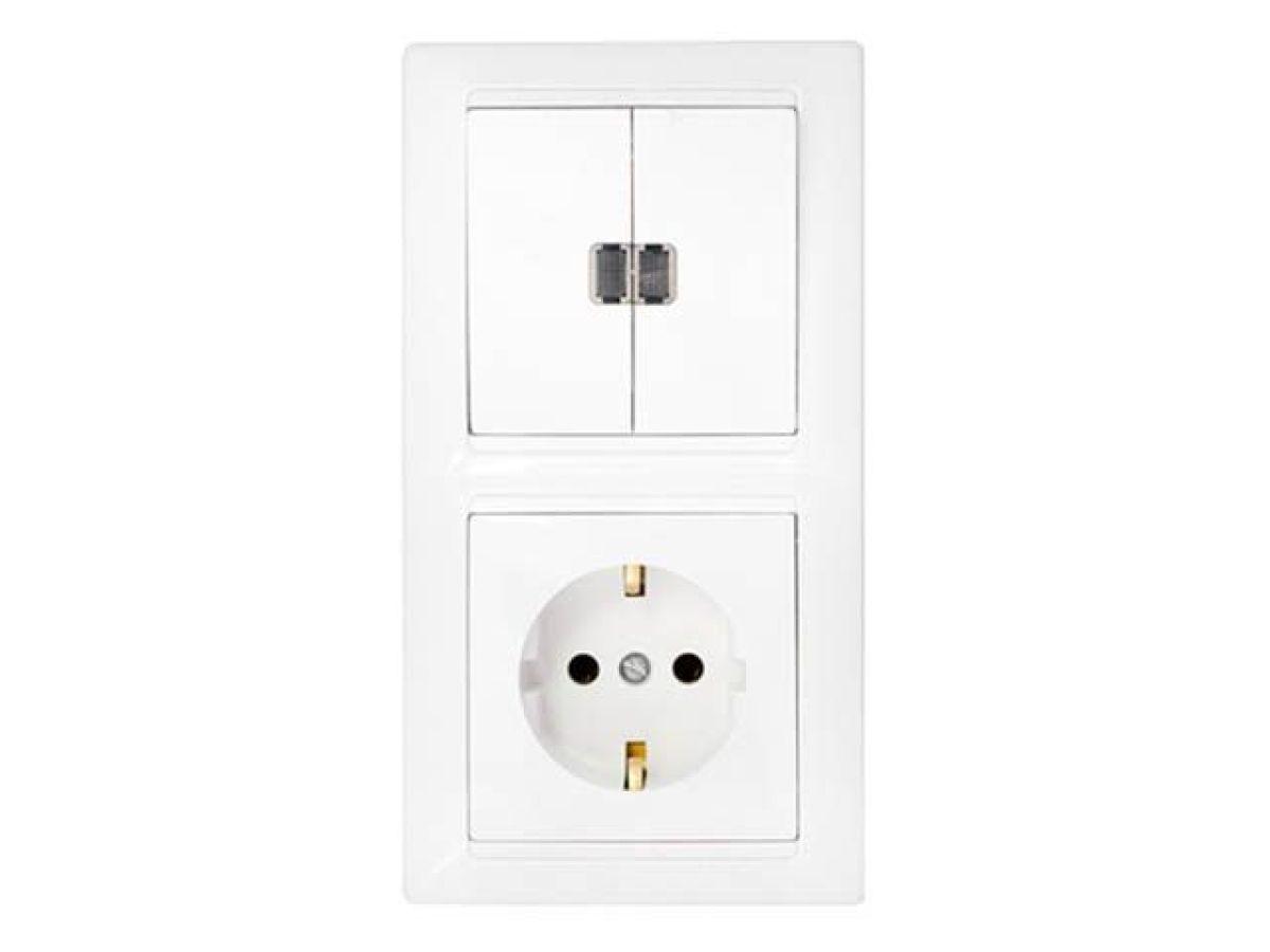 | | Блок выкл. 2 клав. + розетка (скрытая, с/з) со световой индикацией,белая, Стиль, BYLECTRICA |