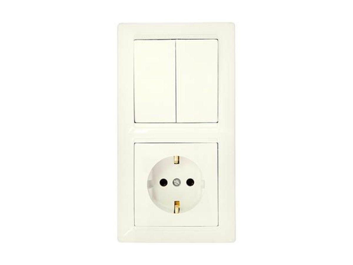| | Блок выкл. 2 клав. + розетка (скрытая, с/з) белая, Уют, BYLECTRICA |