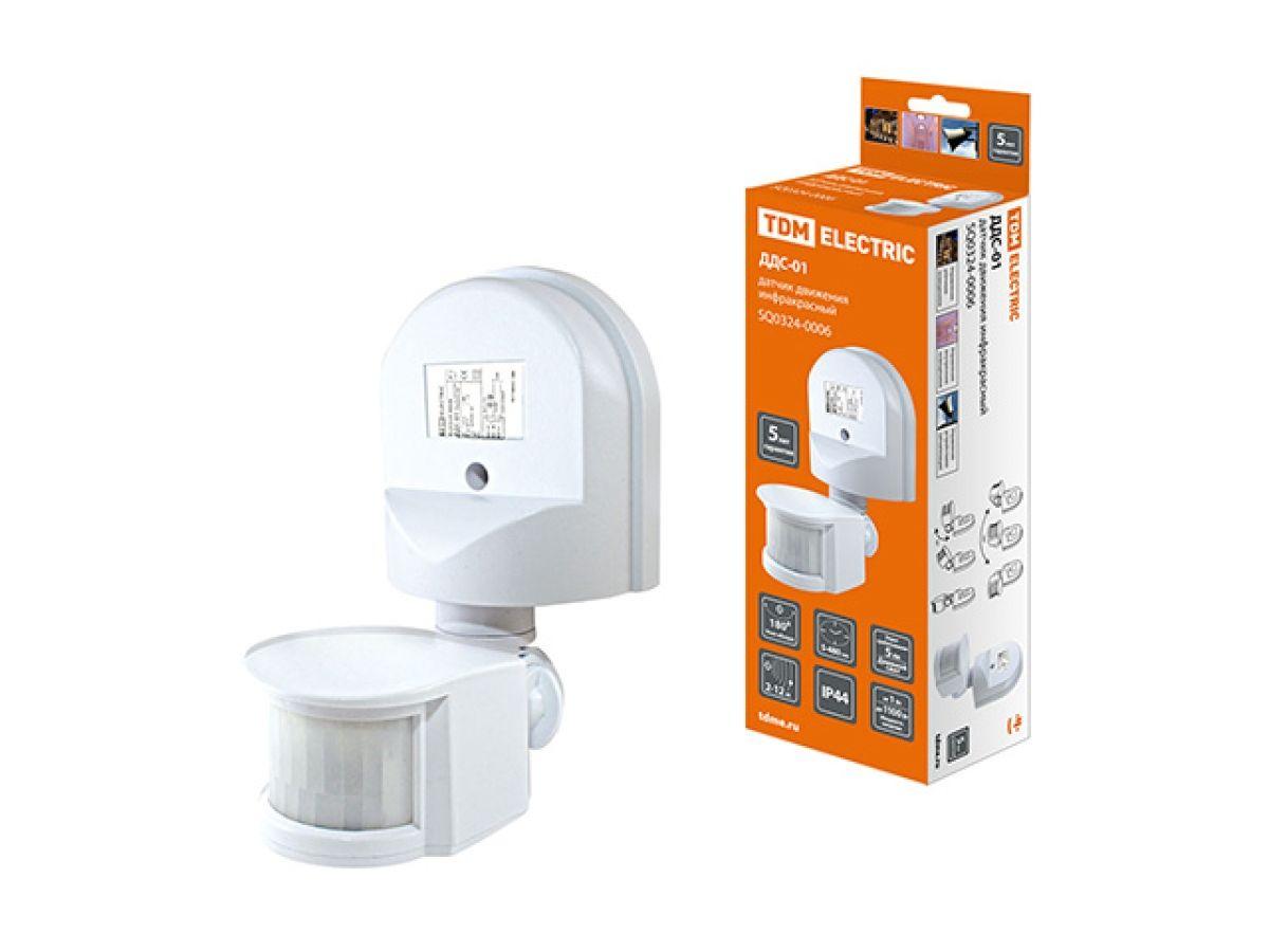 | | Датчик движения настенный ДДС-01 1100Вт, 5-480с, 2-12м, 5+Лк, 180гр, IP44, TDM |