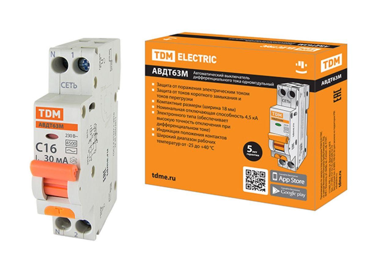 | | Автоматич. выключатель 63М C16 30мА TDM |