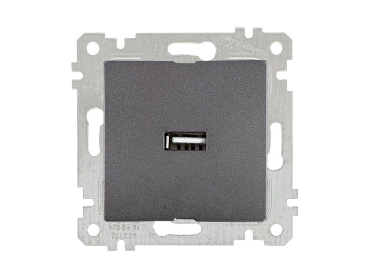 Розетка 1-ая USB (скрытая, без рамки) дымчатая, RITA, MUTLUSAN (USB-зарядка, 5V-2.1A)