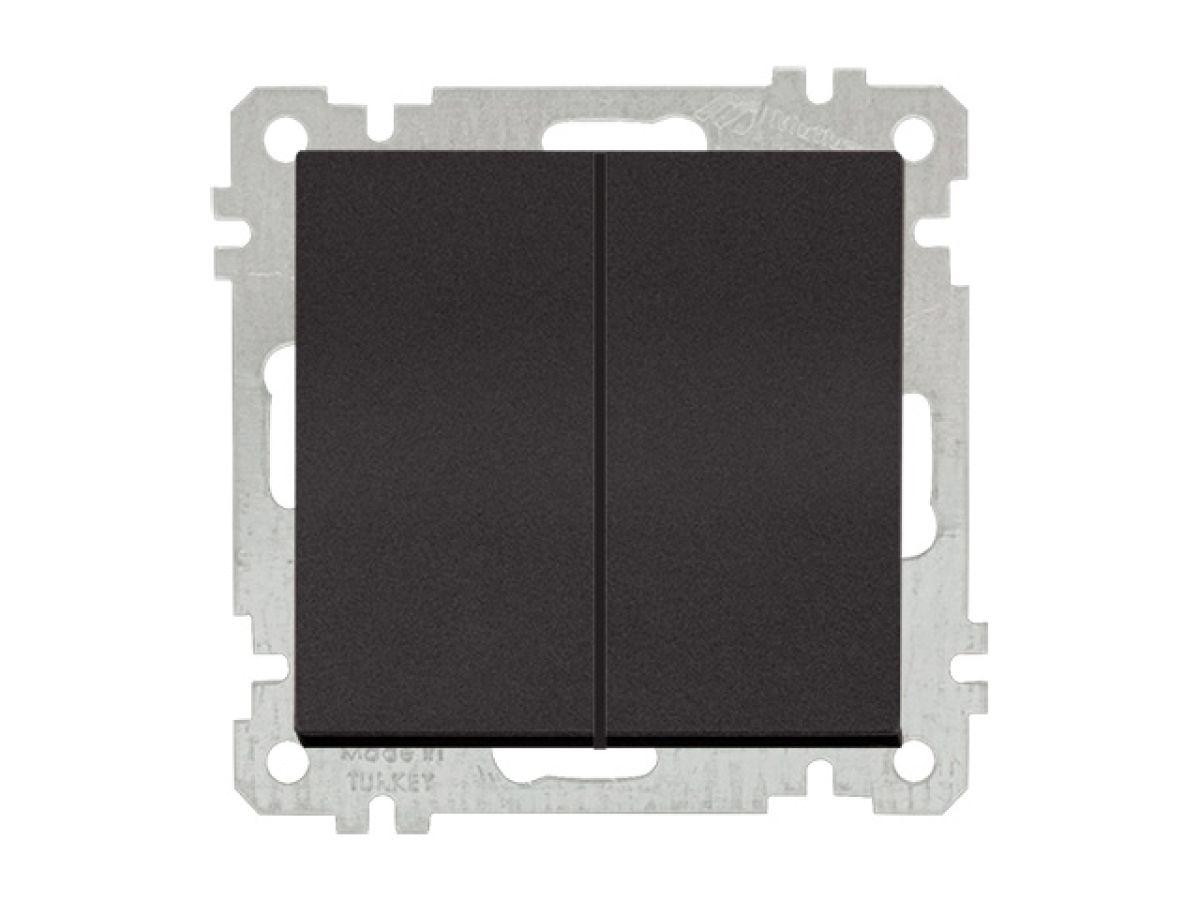 Выключатель 2-клав. (скрытый, без рамки, винт. зажим) черный, DARIA, MUTLUSAN (10 A, 250 V, IP 20)