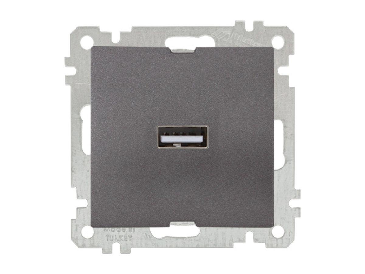 Розетка 1-ая USB (скрытая, без рамки) титан, DARIA, MUTLUSAN (USB-зарядка, 5V-2.1A)