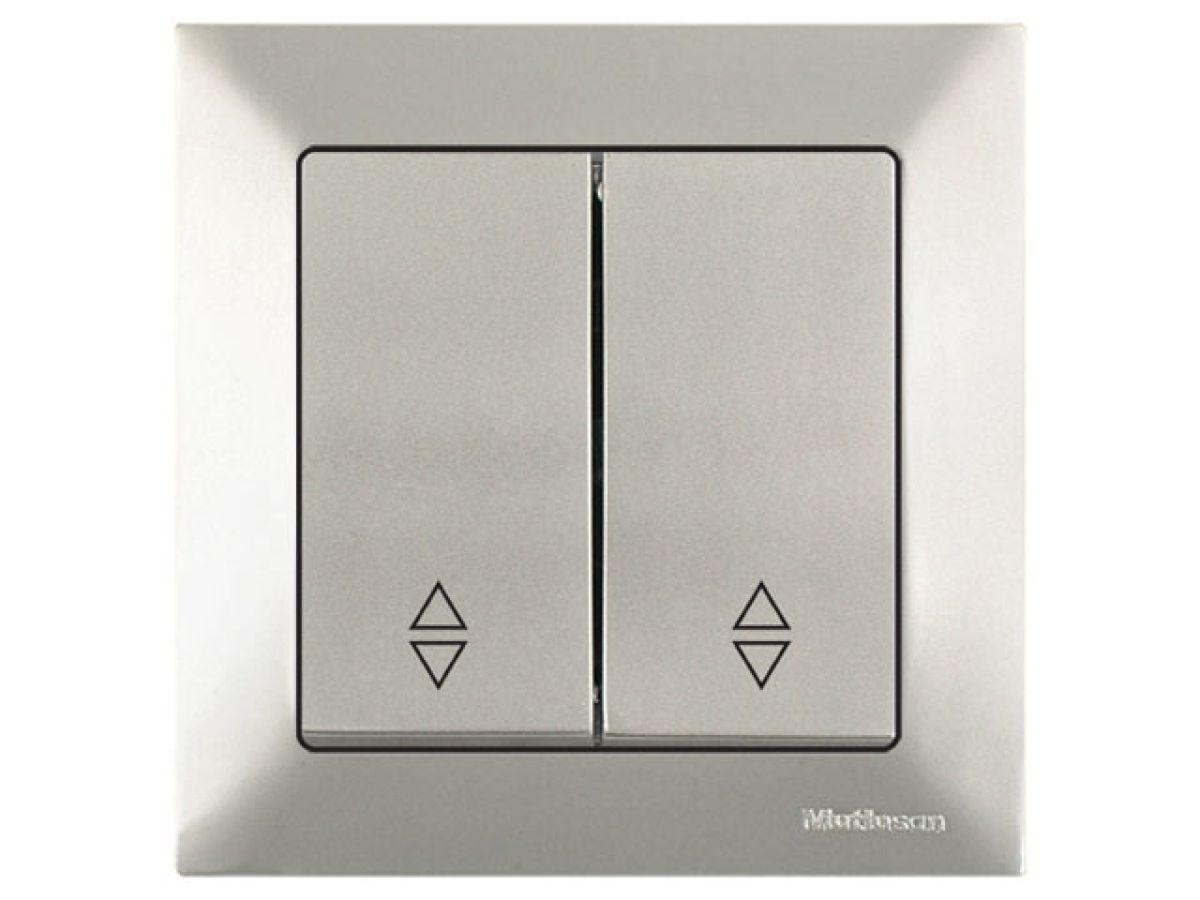 Выключатель проходной 2-клав. (скрытый, пруж. зажим) титан, DARIA, MUTLUSAN (10 A, 250 V, IP 20)