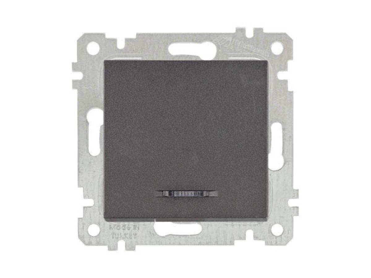 Выключатель 1-клав. (с подсветкой, скрытый, без рамки, винт. зажим) дымчатый, RITA, MUTLUSAN (10 A, 250 V, IP 20)