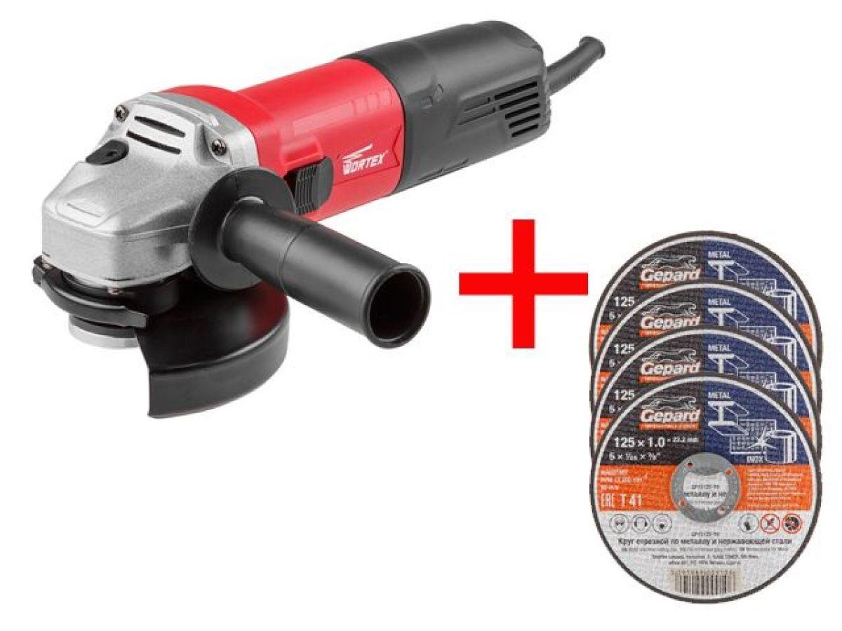 Одноручная углошлифмашина WORTEX AG 1210-1 в кор. + АКЦИЯ! 4 отр. круга GEPARD в подарок! (4 отр. круга по мет. GEPARD в подарок!)